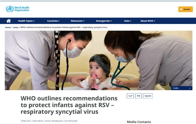 世卫组织发布保护婴儿免受RSV感染首个立场文件